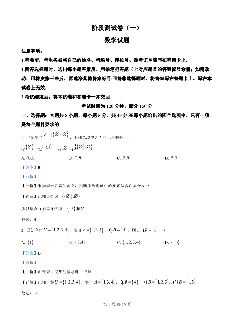 高一数学(精品解析版)--黑龙江省双鸭山市部分学校2025-2026学年高一上学期9月月考