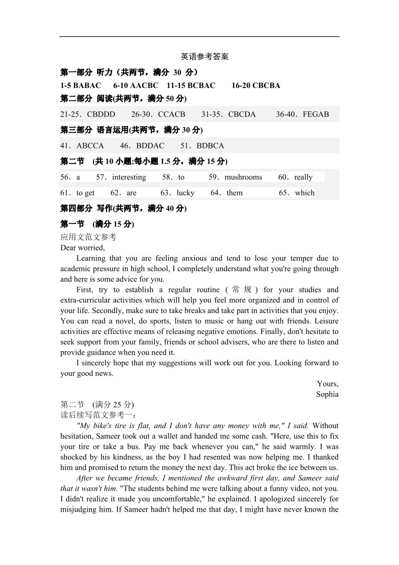 高一英语答案--河北省保定市部分学校2025-2026学年高一上学期9月月考