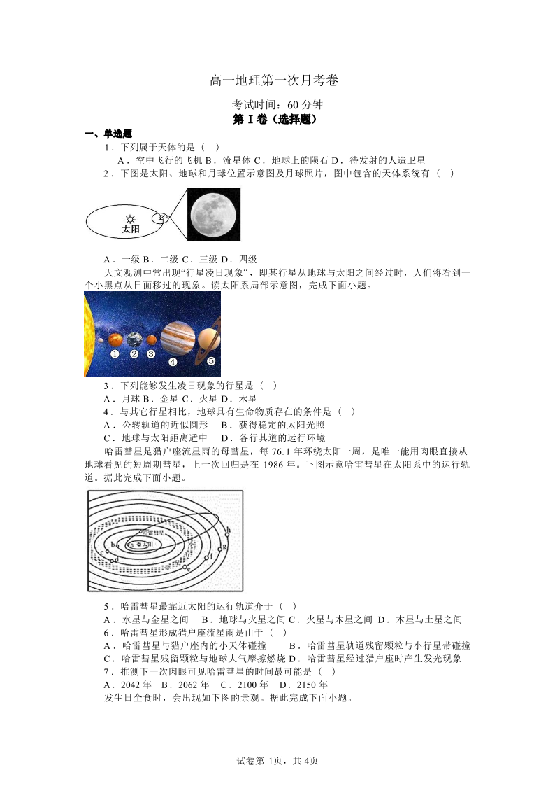 高一地理--河北省保定市部分学校2025-2026学年高一上学期9月月考