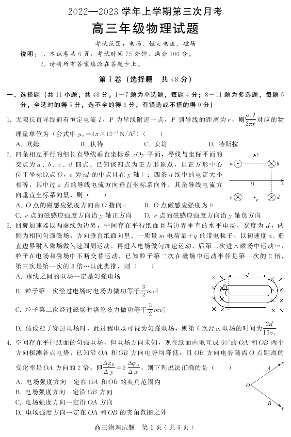 高三物理--河北省邢台市2022-2023学年高三上学期12月月考