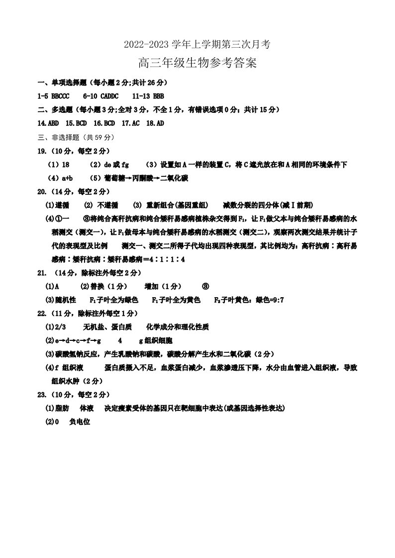 高三生物答案--河北省邢台市2022-2023学年高三上学期12月月考