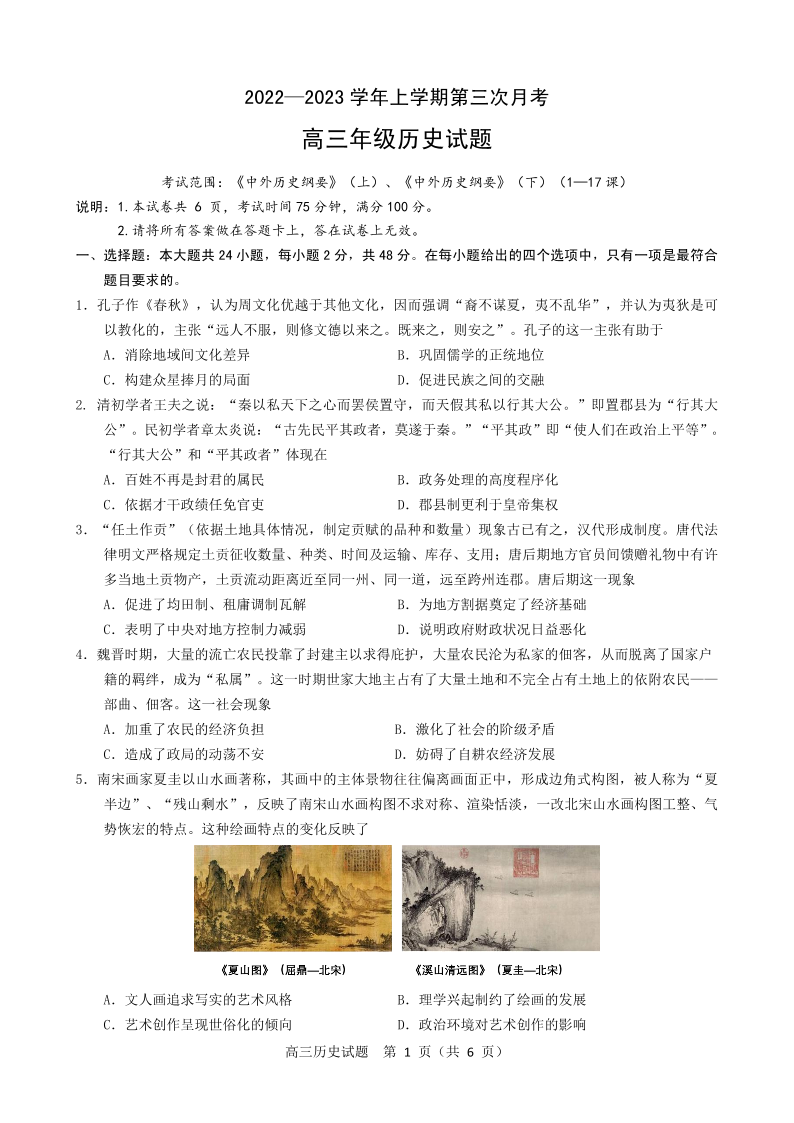 高三历史--河北省邢台市2022-2023学年高三上学期12月月考