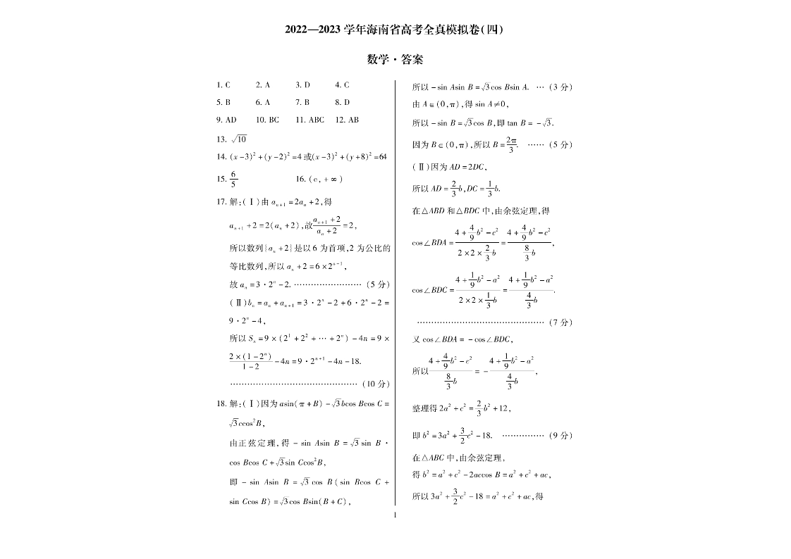 高三数学答案-海南省2022-2023学年高考全真模拟四