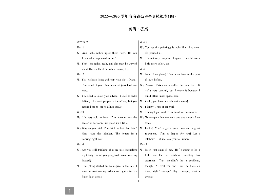 高三英语答案-海南省2022-2023学年高考全真模拟四