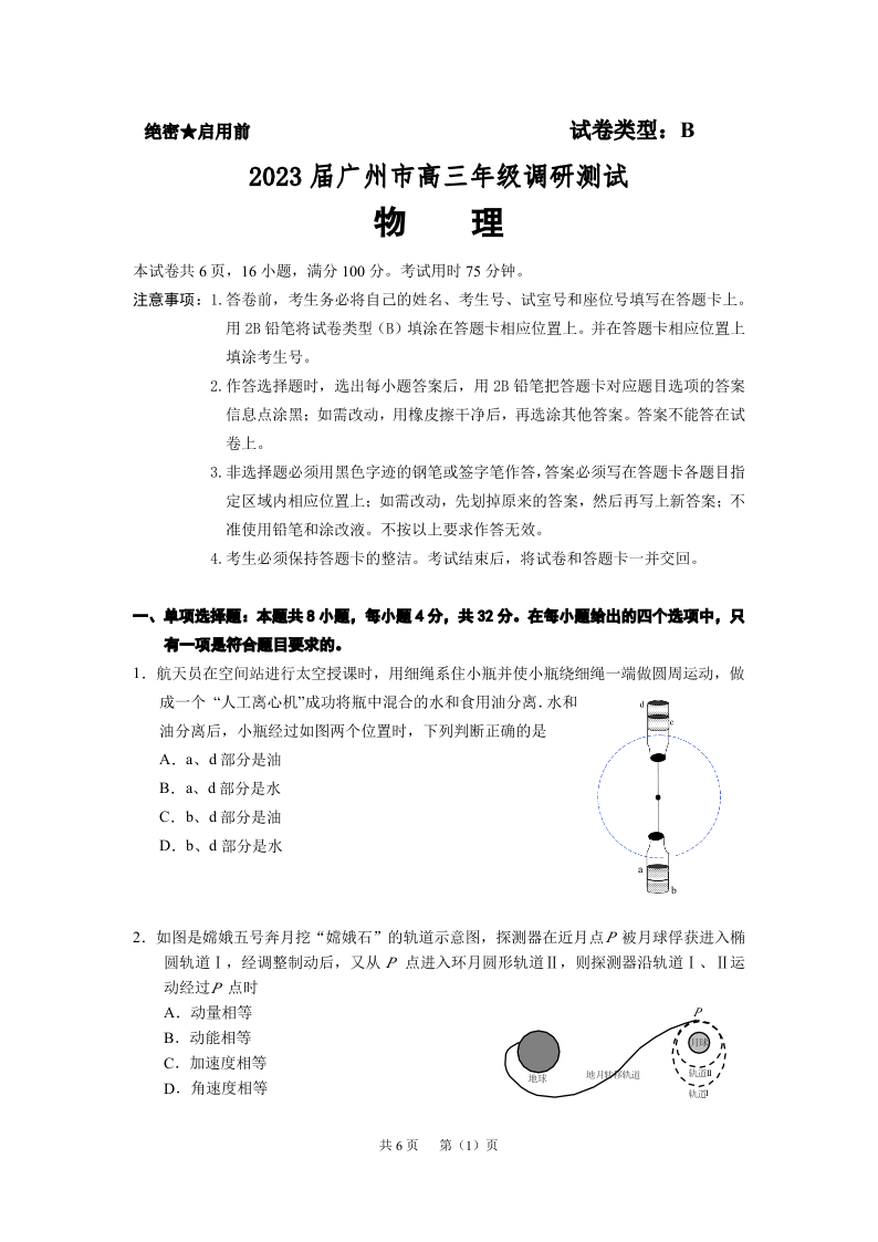 高三物理-广州市2023届高三年级12月调研(零模)