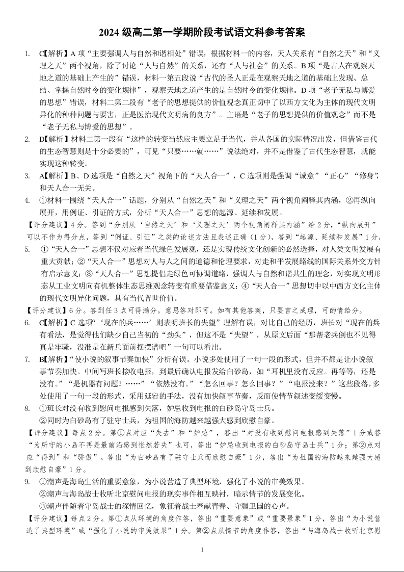 高二语文答案--广东省汕头市金山中学2025-2026学年高二上学期10月阶段考试