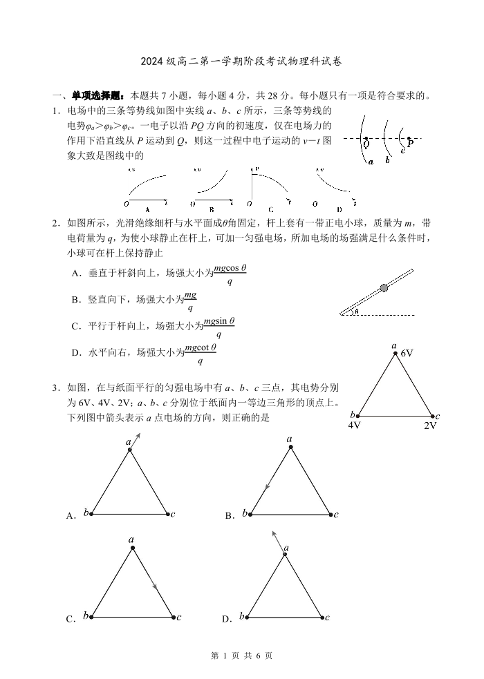 高二物理--广东省汕头市金山中学2025-2026学年高二上学期10月阶段考试