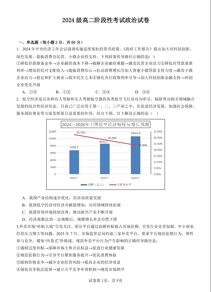 高二政治--广东省汕头市金山中学2025-2026学年高二上学期10月阶段考试