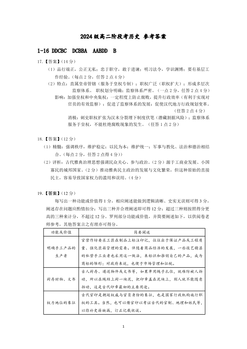高二历史答案--广东省汕头市金山中学2025-2026学年高二上学期10月阶段考试