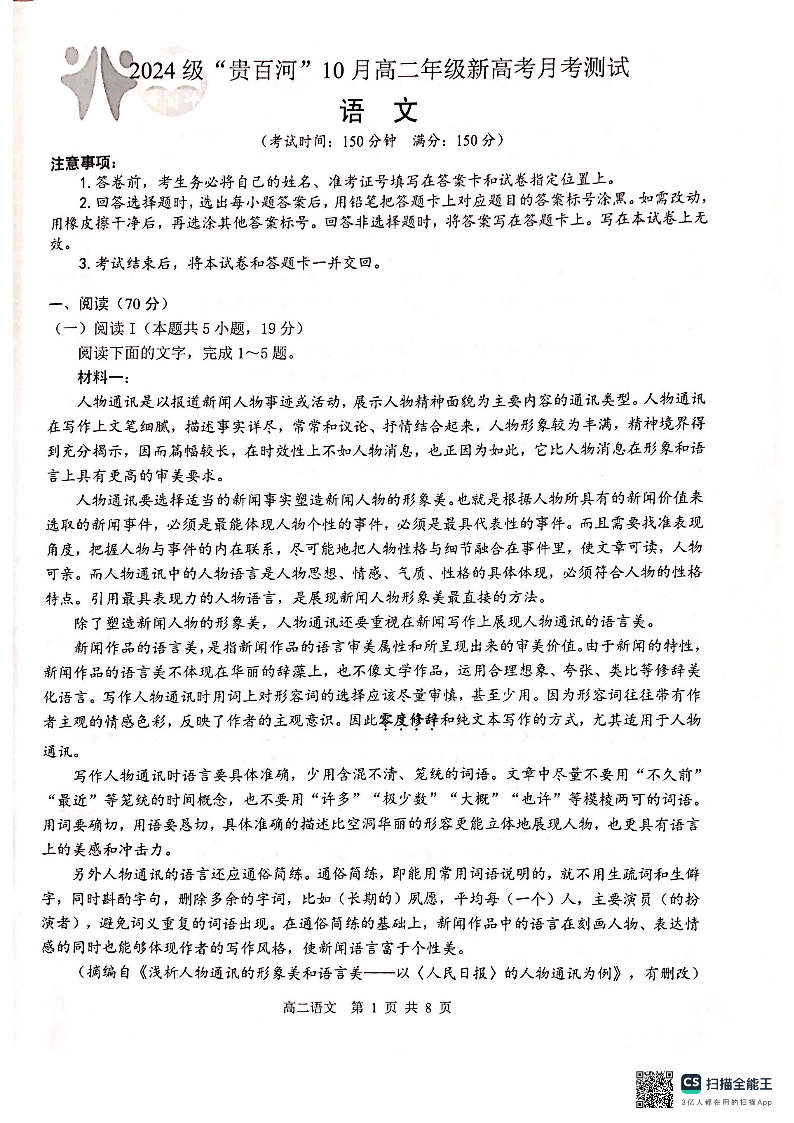 高二语文--广西贵百河2025-2026学年高二上学期10月考