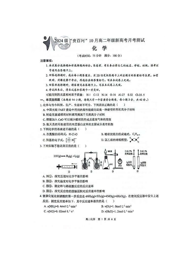 高二化学--广西贵百河2025-2026学年高二上学期10月考