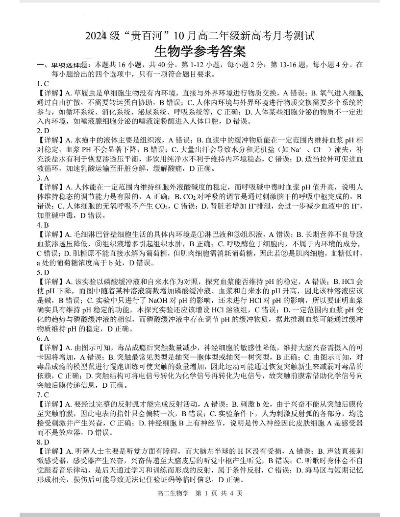 高二生物答案--广西贵百河2025-2026学年高二上学期10月考