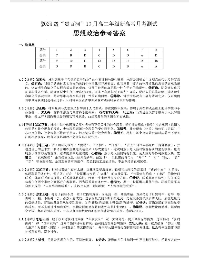 高二政治答案--广西贵百河2025-2026学年高二上学期10月考