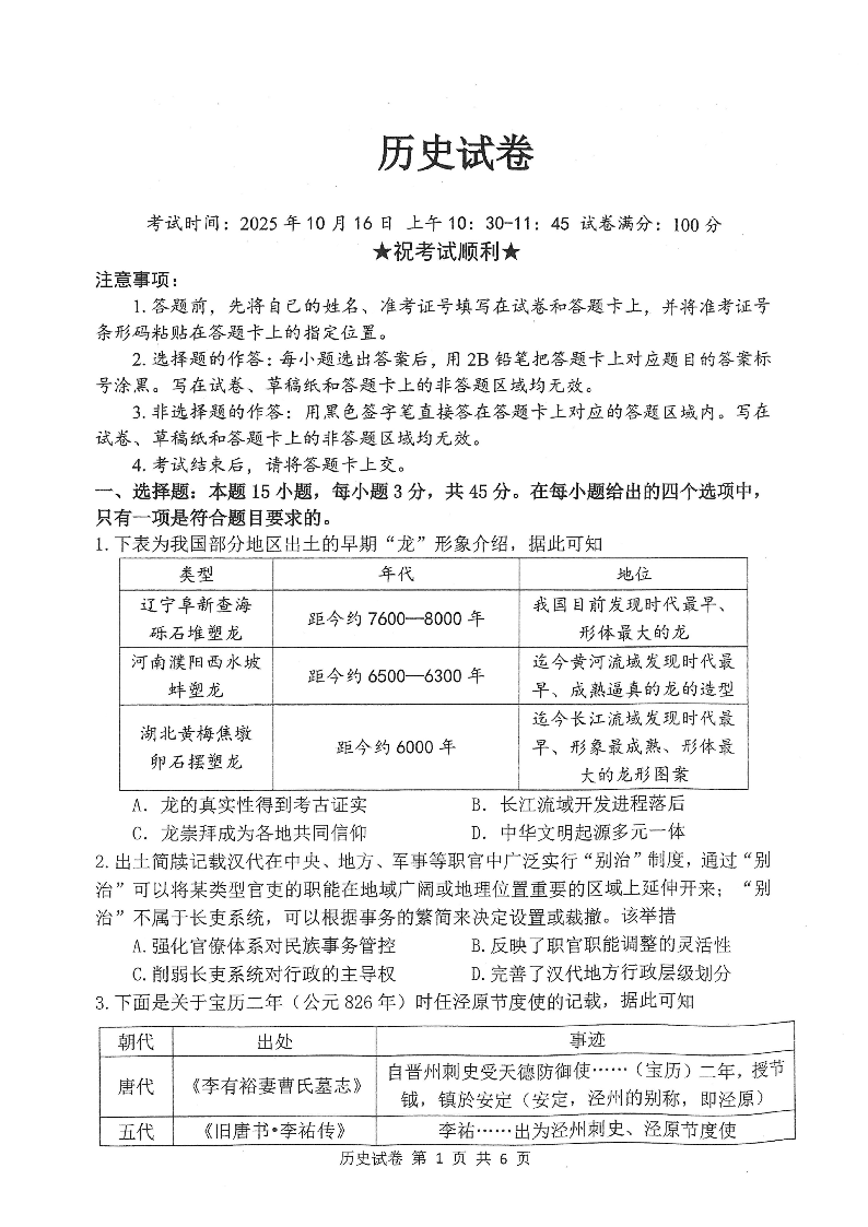 高三历史--湖北省腾云联盟2026届高三上学期10月联考