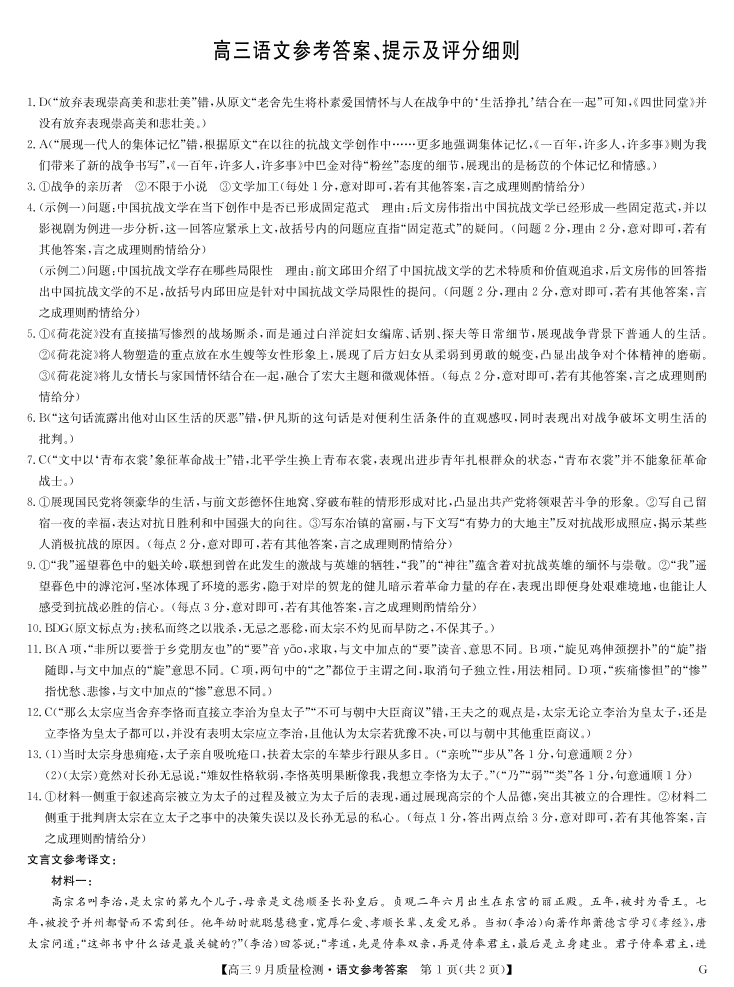 高三语文答案--湖北省九师联盟2026届高三9月质量检测巩固卷(10月联考)