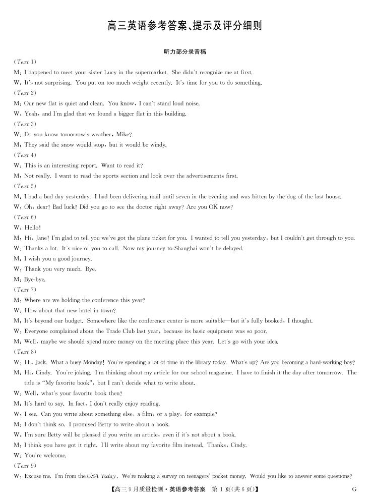 高三英语答案--湖北省九师联盟2026届高三9月质量检测巩固卷(10月联考)