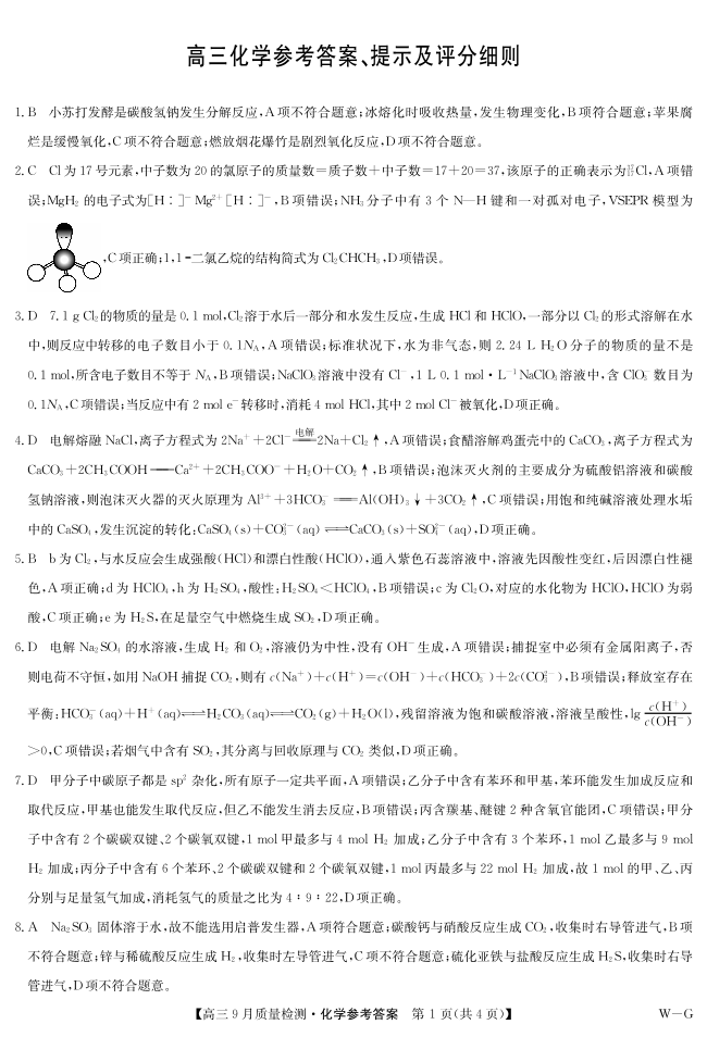 高三化学答案--湖北省九师联盟2026届高三9月质量检测巩固卷(10月联考)