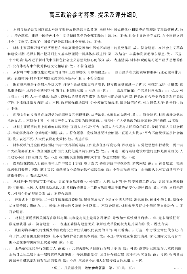 高三政治答案--湖北省九师联盟2026届高三9月质量检测巩固卷(10月联考)