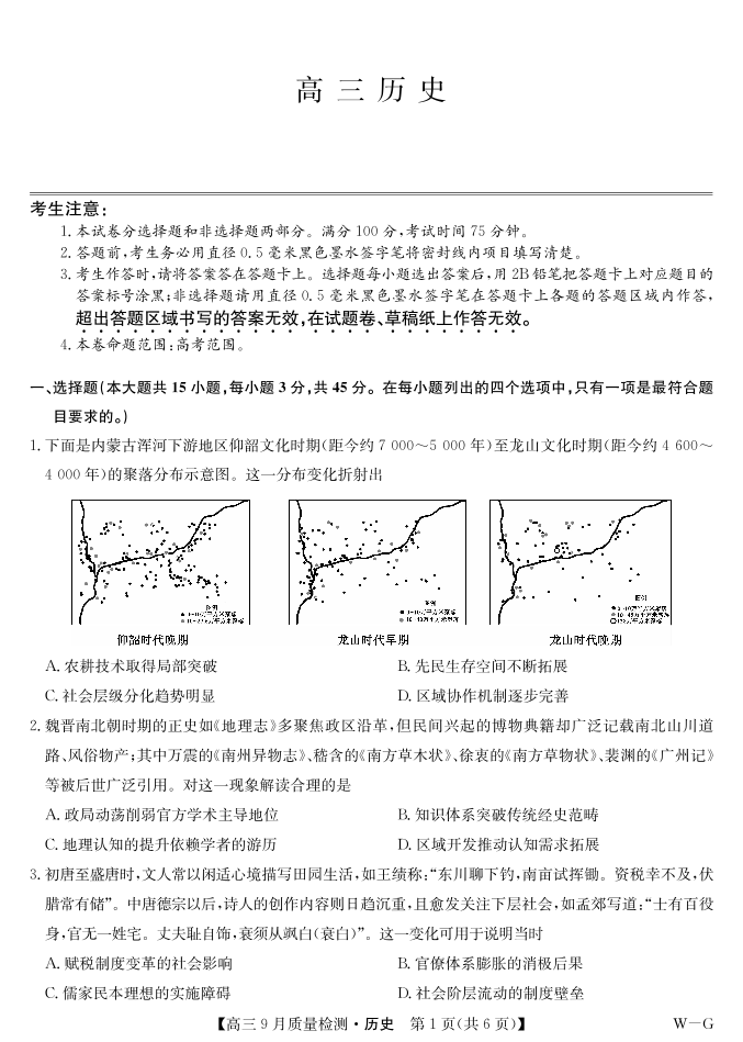 高三历史--湖北省九师联盟2026届高三9月质量检测巩固卷(10月联考)
