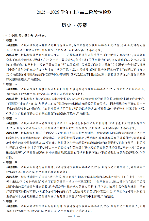 高三历史答案--河南省天一大联考 2026届高三10月阶段性检测