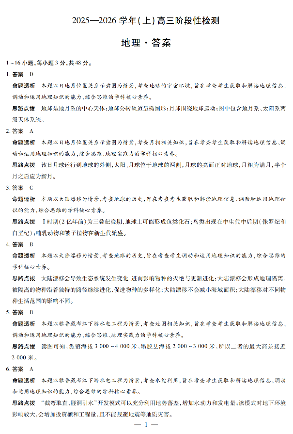 高三地理答案--河南省天一大联考 2026届高三10月 阶段性检测