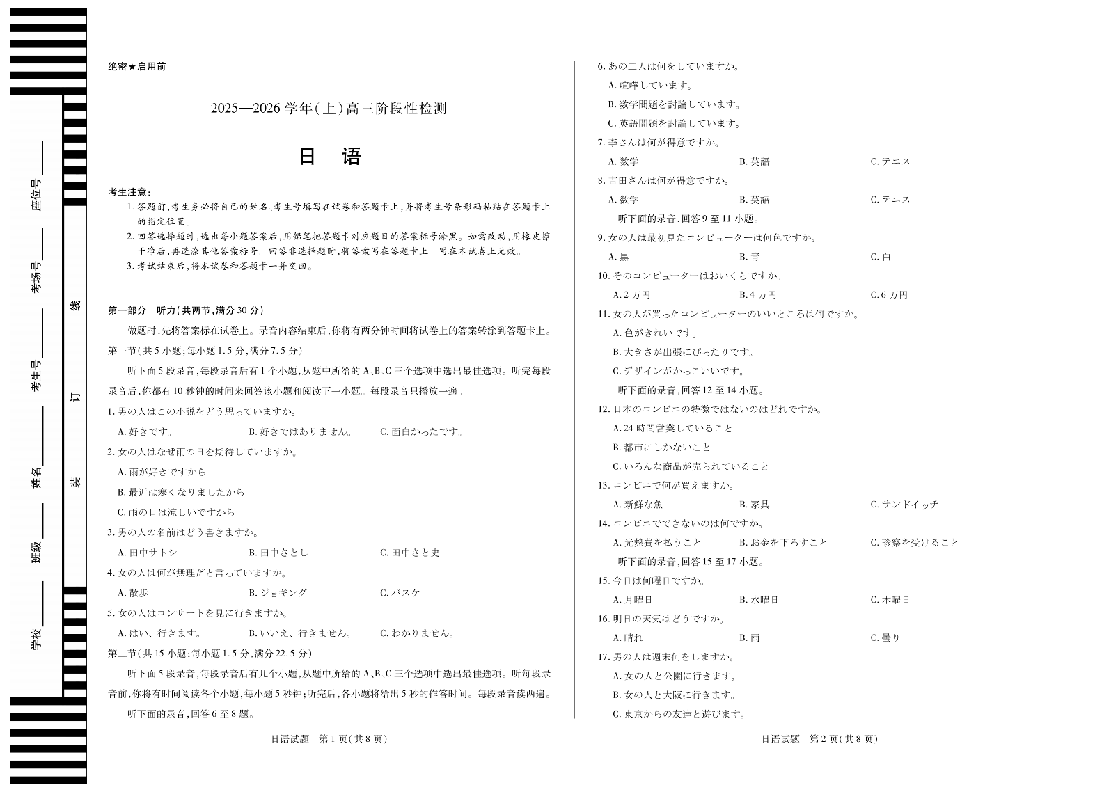 高三日语--河南部分高中联考2026届高三10月阶段性检测