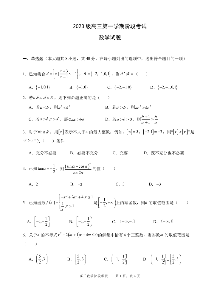 高三数学--广东省汕头市金山中学2026届高三上学期10月阶段考试