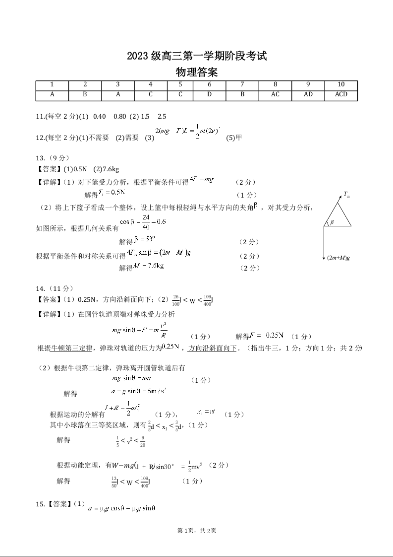 高三物理答案--广东省汕头市金山中学2026届高三上学期10月阶段考试