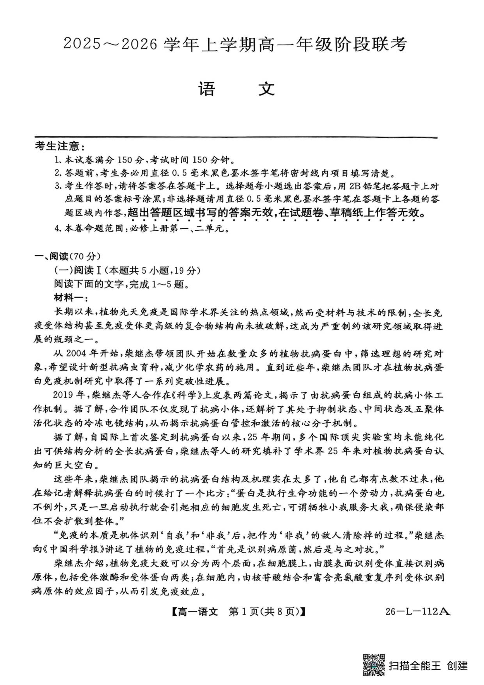 高一语文--安徽省江淮名校2025-2026学年高一上学期阶段联考