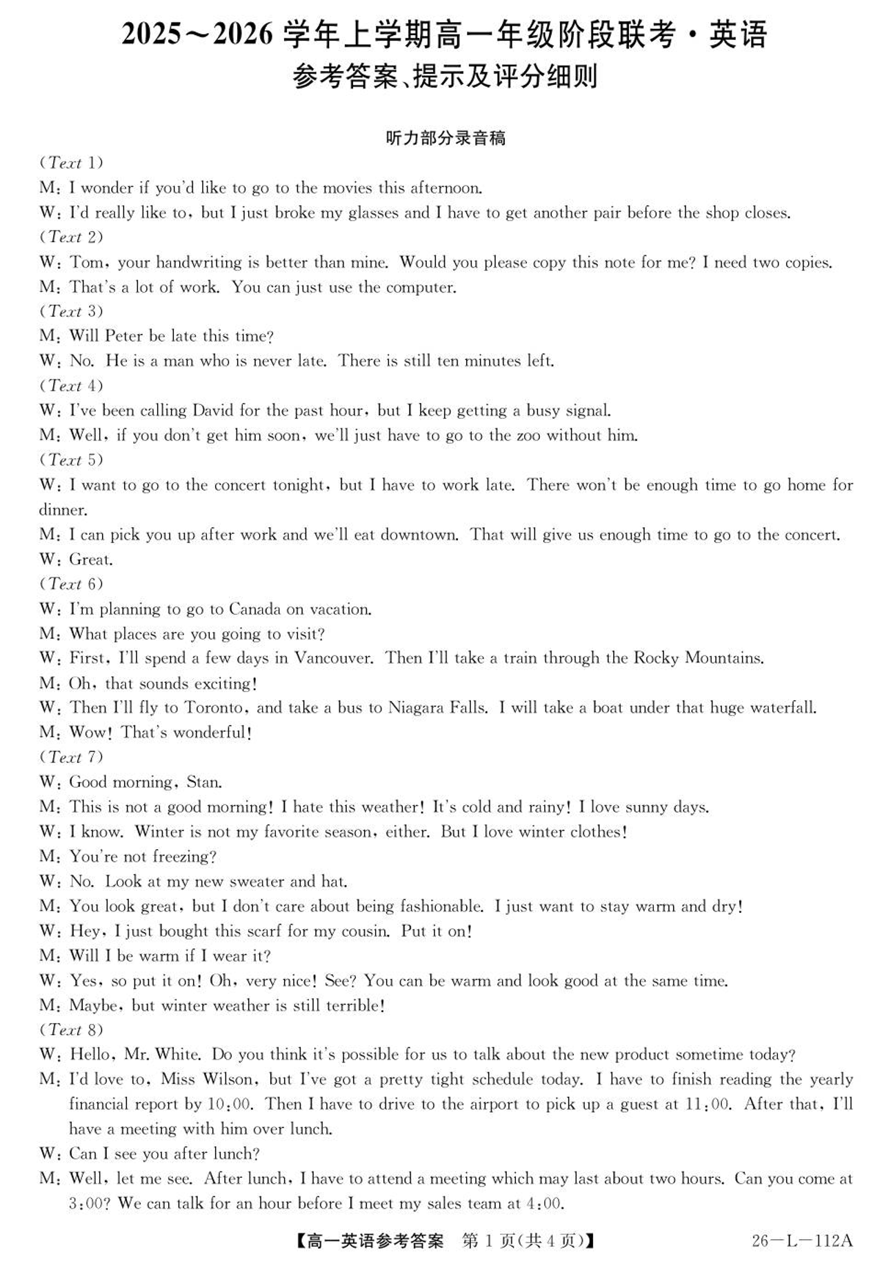 高一英语答案--安徽省江淮名校2025-2026学年高一上学期阶段联考