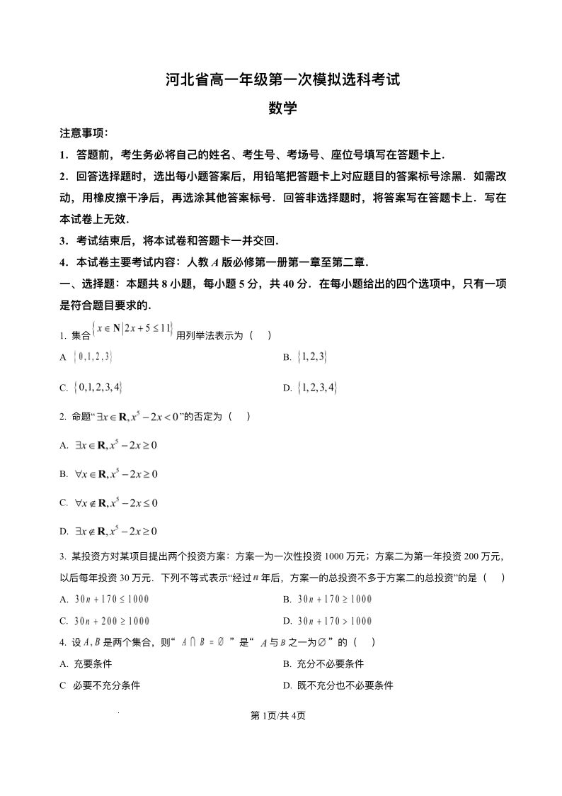 高一数学+答案--河北省保定市部分高中2025-2026学年高一上学期10月月考
