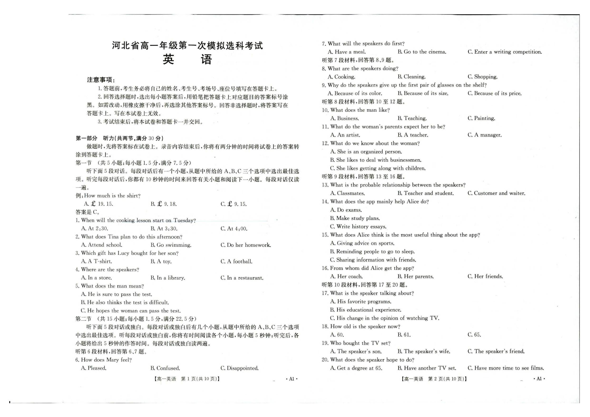 高一英语--河北省保定市部分高中2025-2026学年高一上学期10月月考
