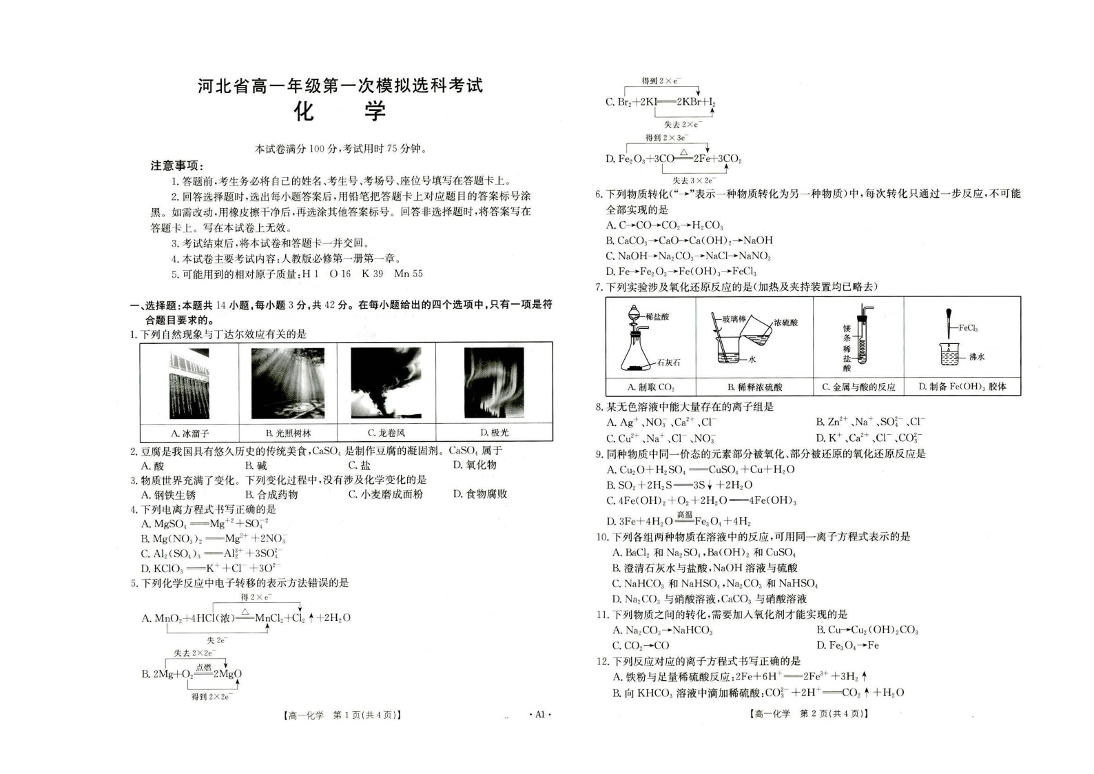 高一化学--河北省保定市部分高中2025-2026学年高一上学期10月月考