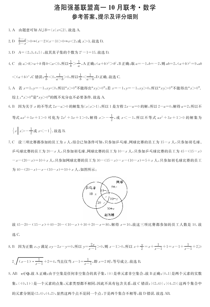 高一数学答案-河南省洛阳强基联盟2025-2026学年高一上学期10月联考