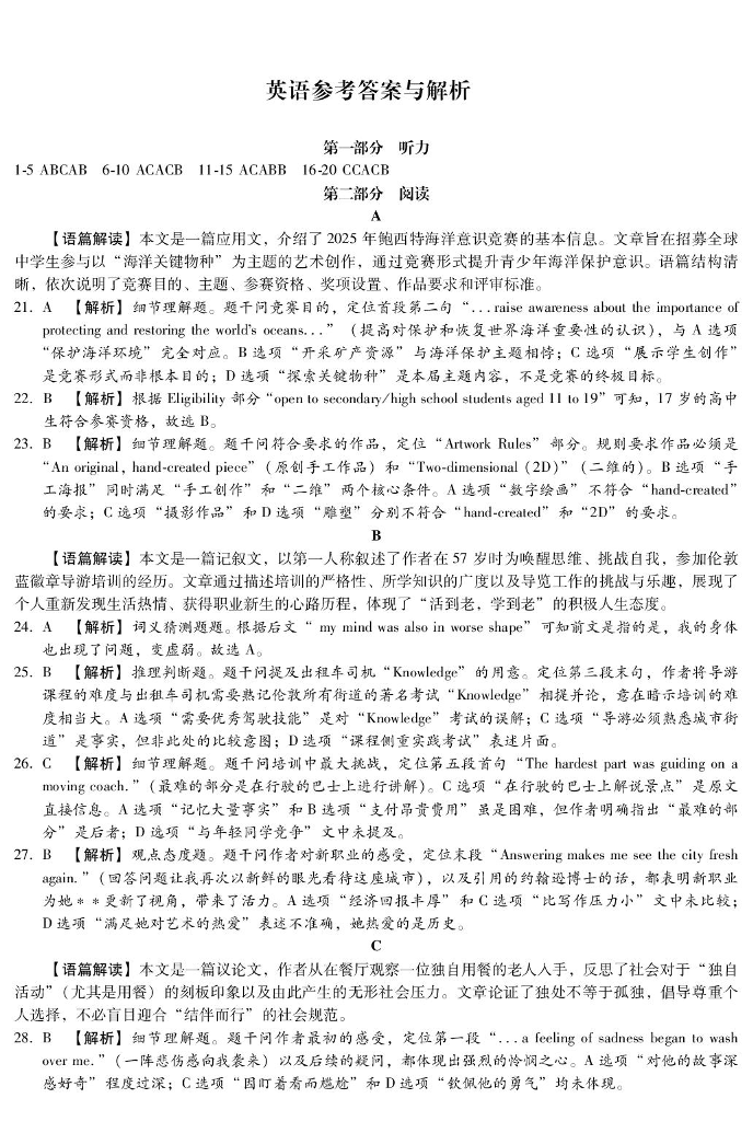 高二英语答案--河北省保定市部分示范高中2025-2026学年高二上学期10月月考