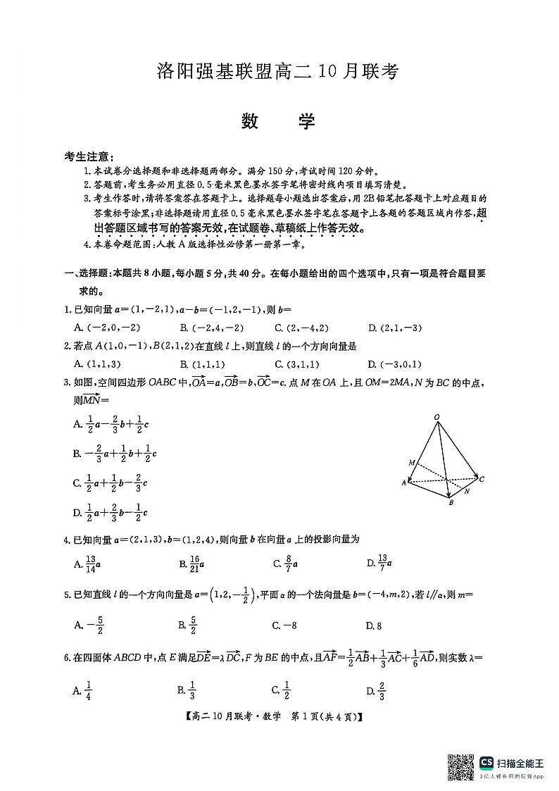 高二数学--河南洛阳强基联盟2025-2026学年高二上学期10月联考