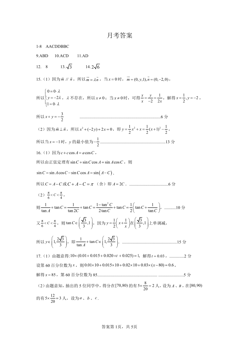 高二数学答案--四川省南充高级中学2025-2026学年高二上学期10月月考