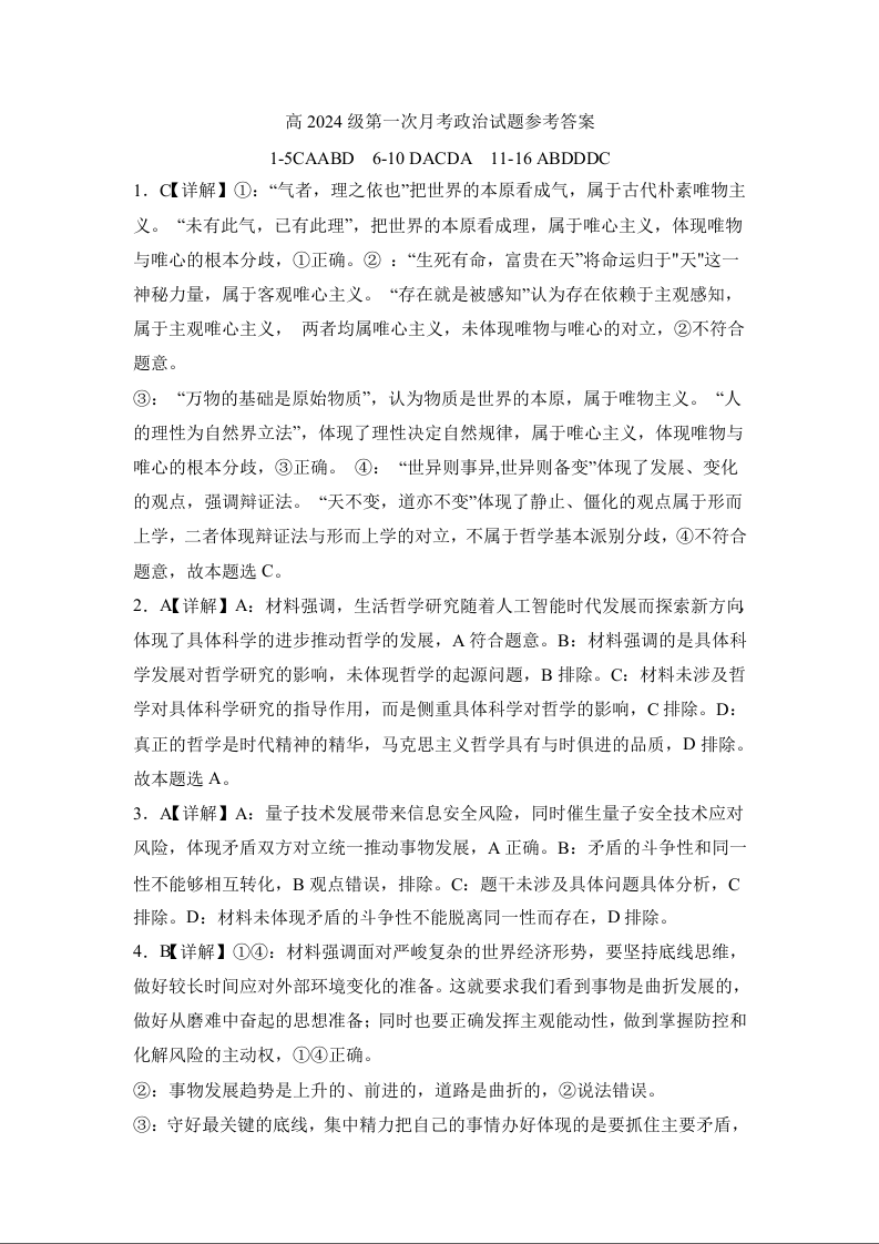 高二政治答案--四川省南充高级中学2025-2026学年高二上学期10月月考