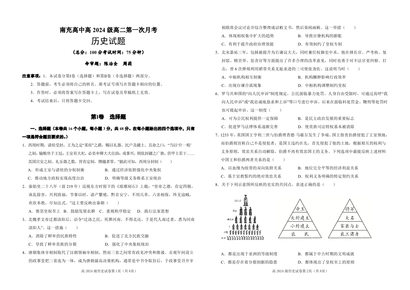 高二历史--四川省南充高级中学2025-2026学年高二上学期10月月考