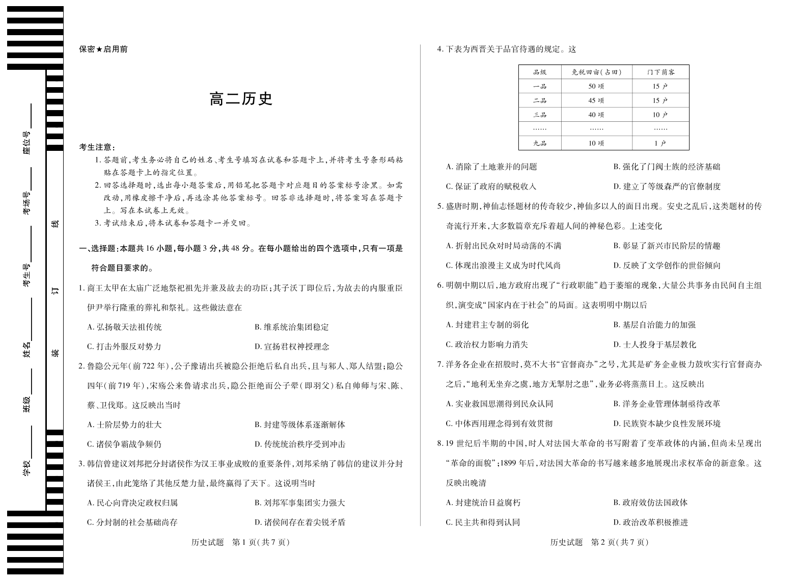 高二历史--湖南省天一大联考2025-2026学年高二上学期10月联考