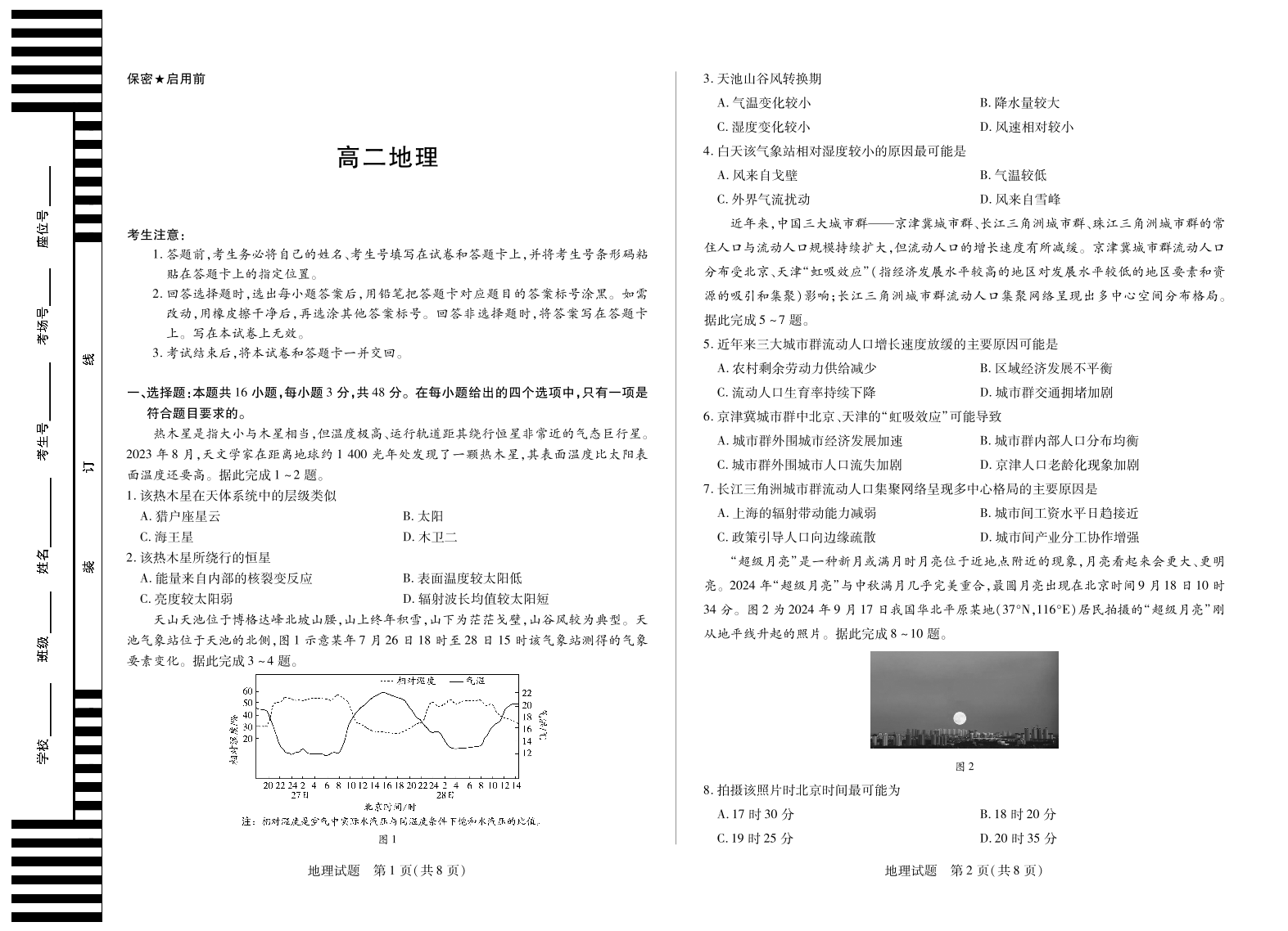 高二地理--湖南省天一大联考2025-2026学年高二上学期10月联考