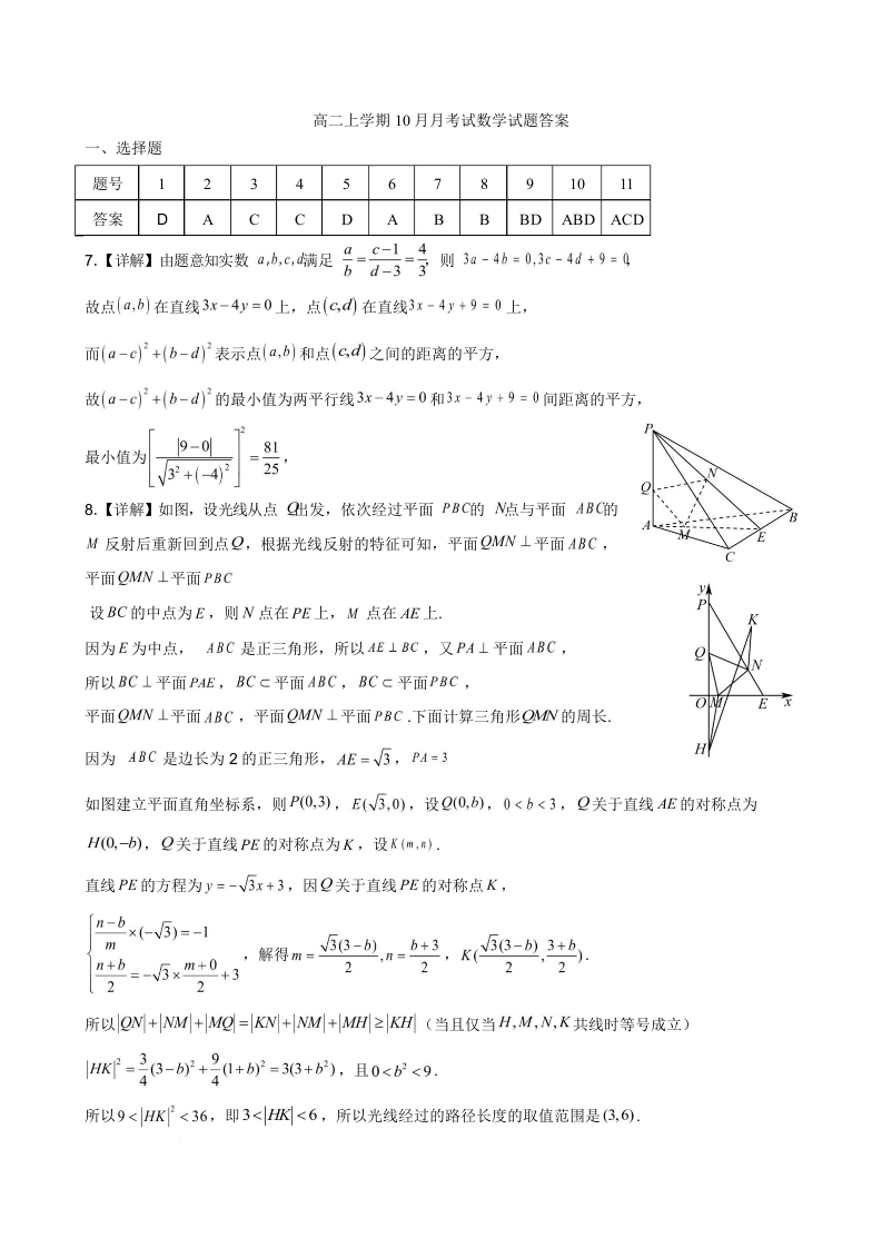 高二数学答案--湖北省武汉市部分重点中学2025-2026学年高二上学期10月月考