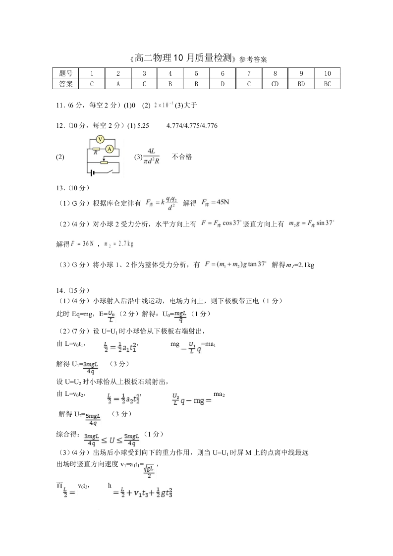 高二物理答案--湖北省武汉市部分重点中学2025-2026学年高二上学期10月月考