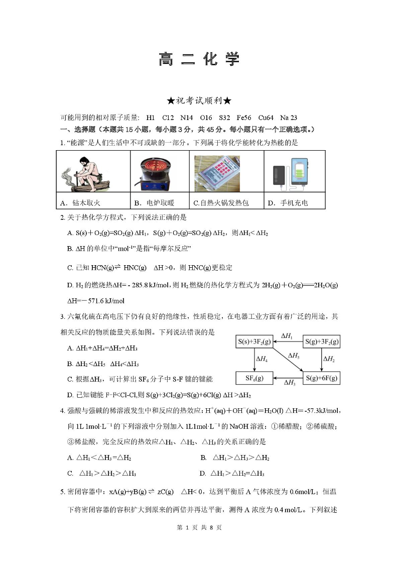 高二化学--湖北省武汉市部分重点中学2025-2026学年高二上学期10月月考