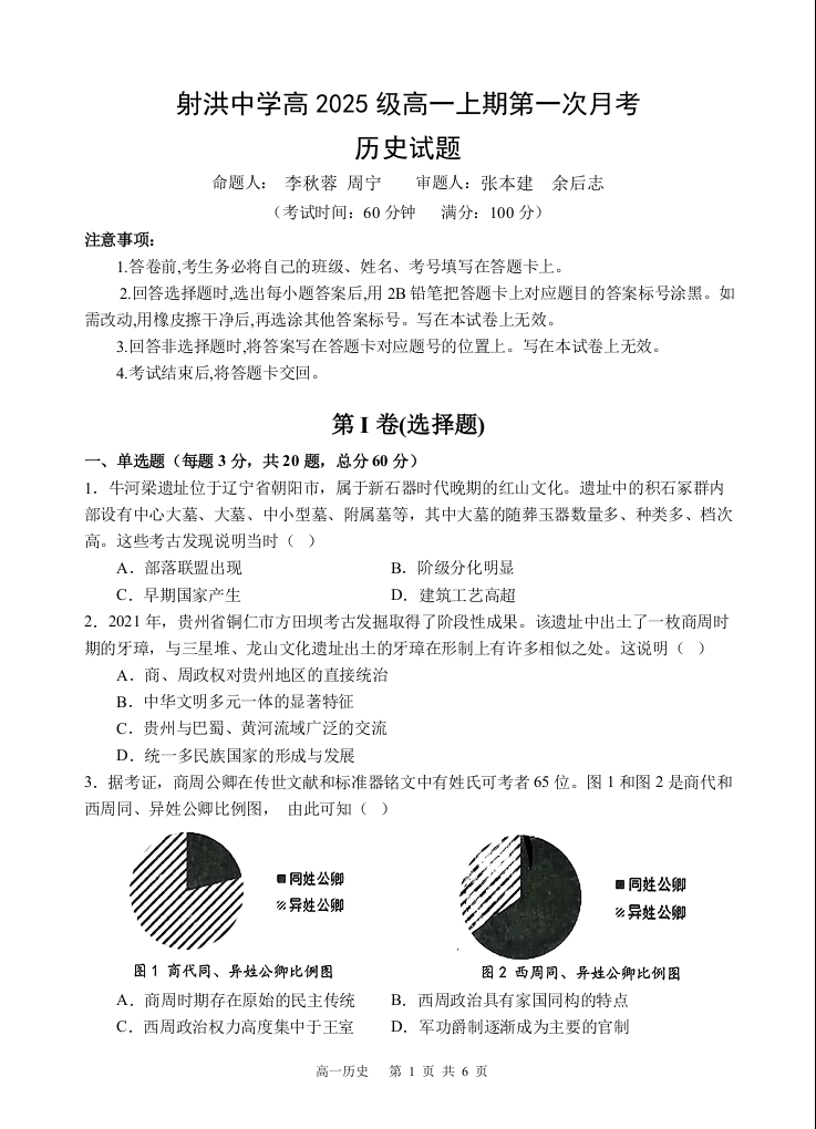 高一历史--四川省遂宁市射洪中学2025-2026学年高一上学期10月月考