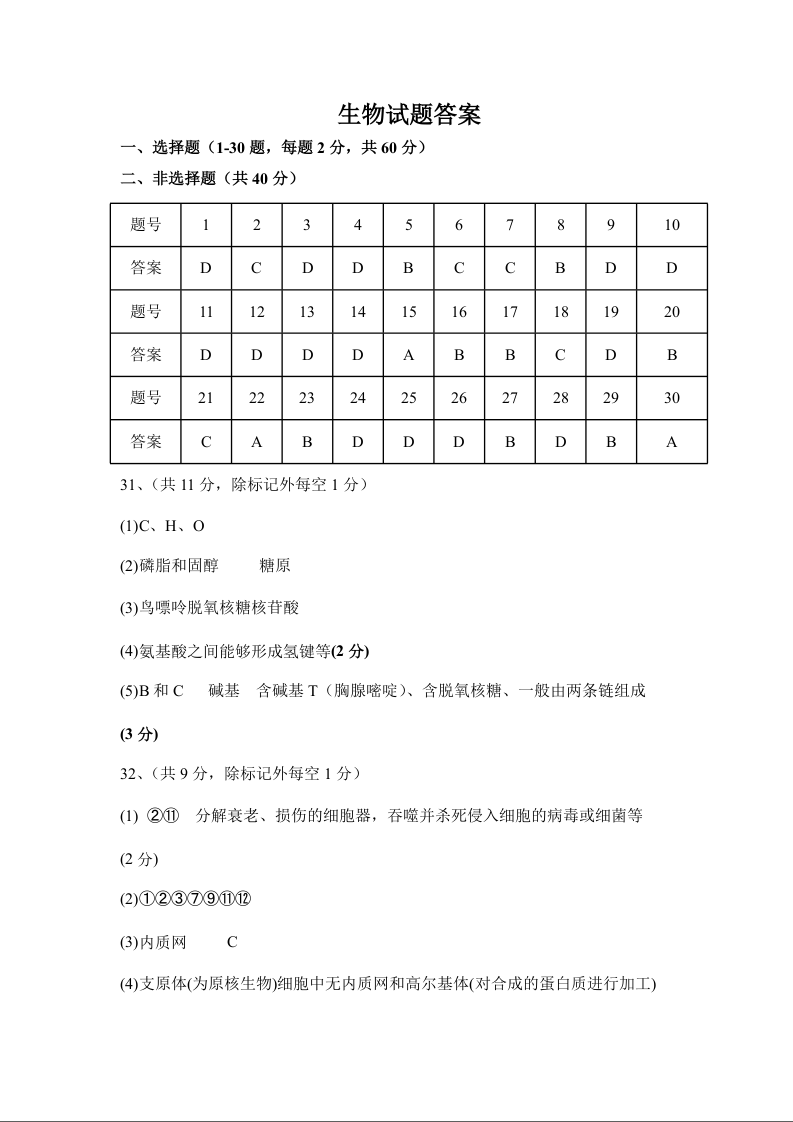 高一生物答案--四川省南充高级中学2025-2026学年高一上学期10月月考