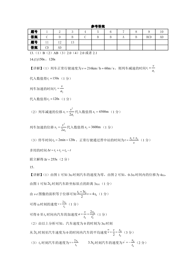 高一物理答案--山西省太原市山西大学附属中学校2025-2026学年高一上学期10月月考