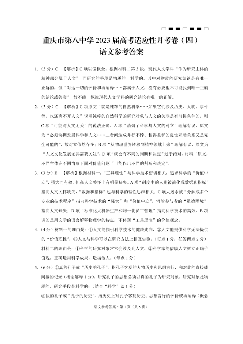 高三语文答案-重庆市第八中学2023届高考适应性月考卷(四)