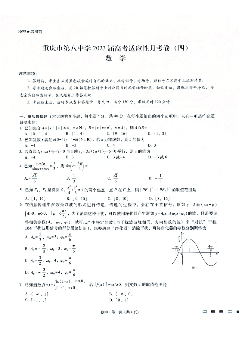 高三数学-重庆市第八中学2023届高考适应性月考卷(四)