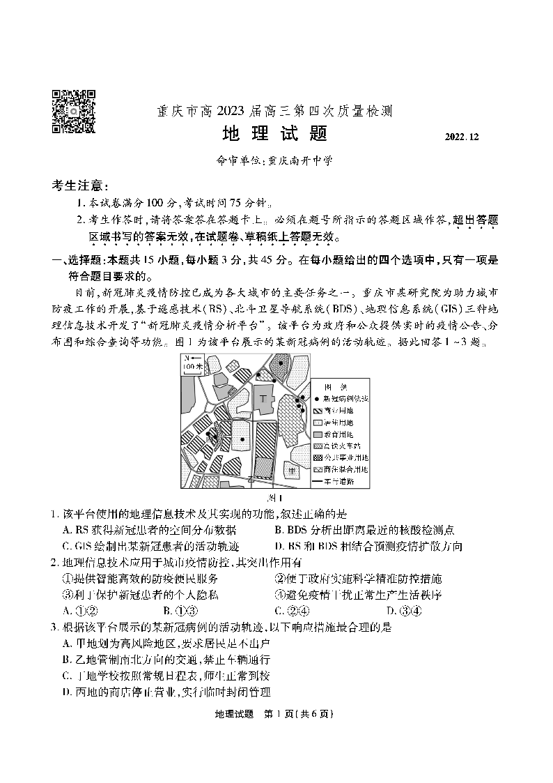 高三地理-重庆市南开中学2023届高三质量检测(四)